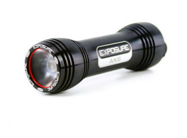 The New Exposure Axis is designed for helmet use but comes with both helmet and handlebar bracketss. Using XML LED technology to keep the size down and the output up, the resultant 850 lumens for 2 hours is phenomenal power when packing all the other features, OMS, SPT+, ITM, and Fuel gauge among others.
